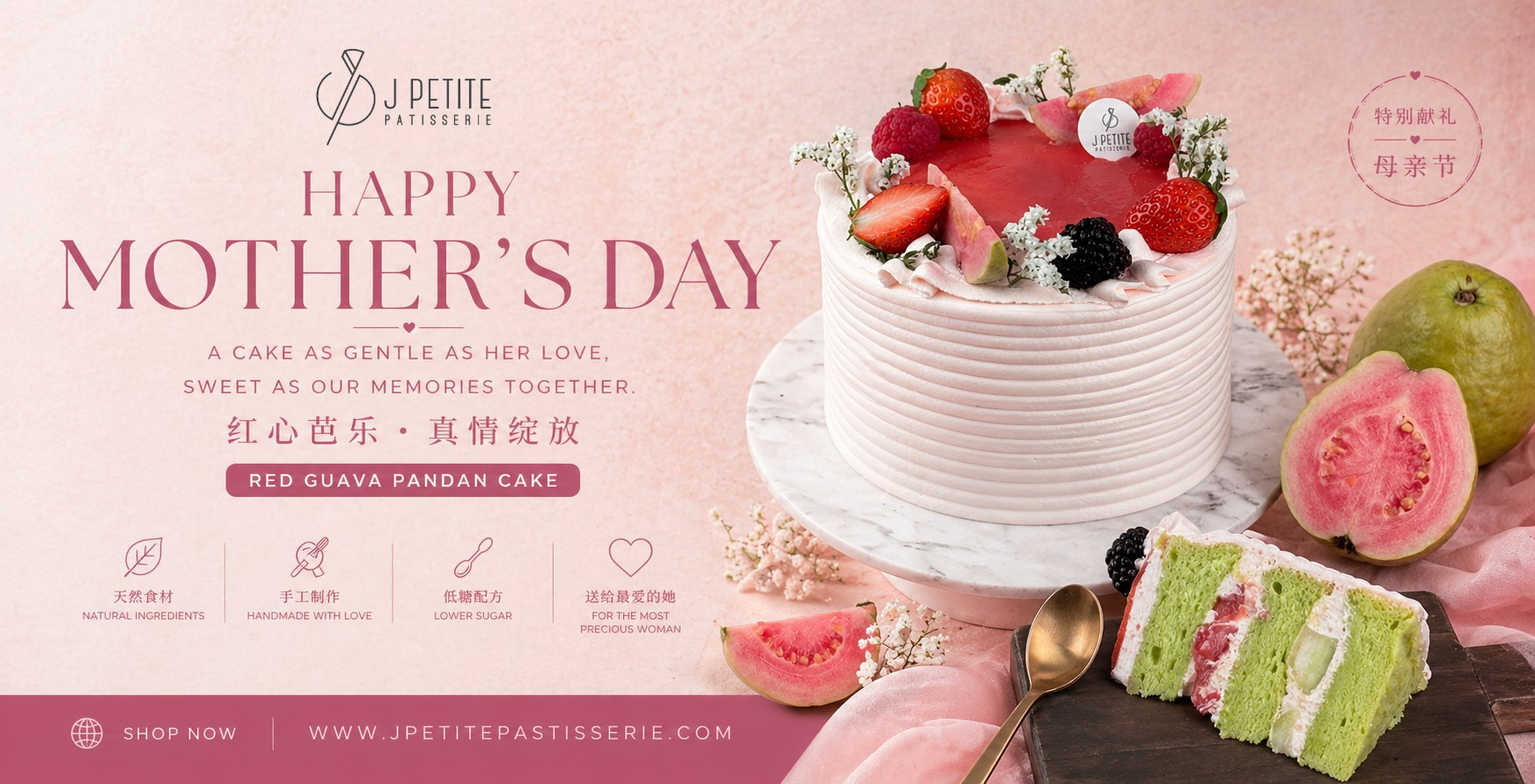 J Petite Patisserie is a homegrown Singapore cake shop that aims to provide quality and delicious cakes to everyone. All our cakes are freshly baked to order, using only the finest quality ingredients, we bake light and fluffy cakes. Creating aesthetically looking cakes with delightful flavours that bring family and friends closer with every slice.
